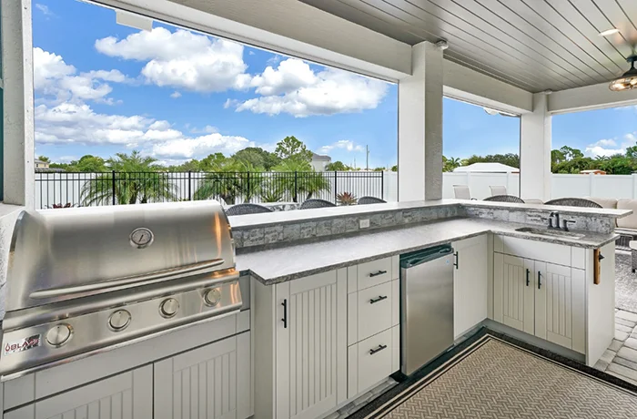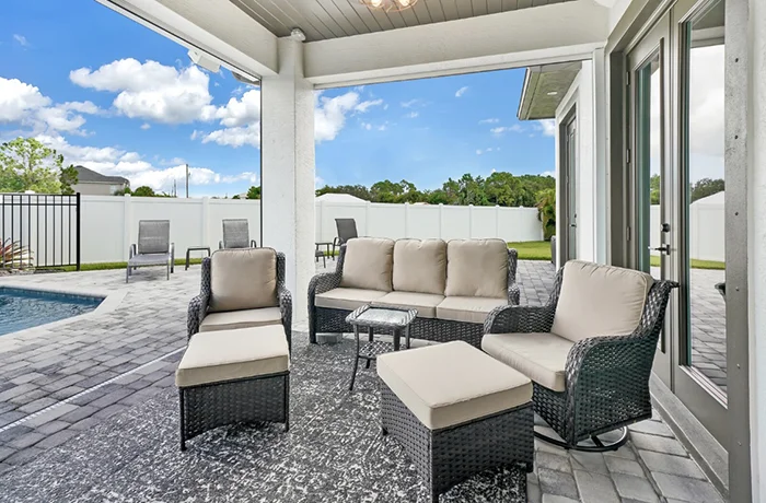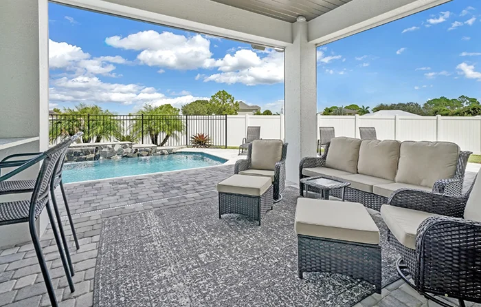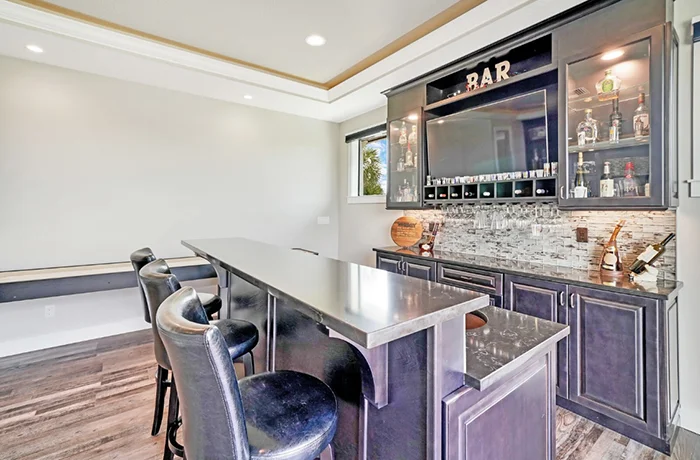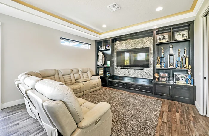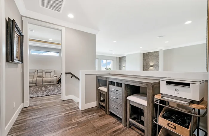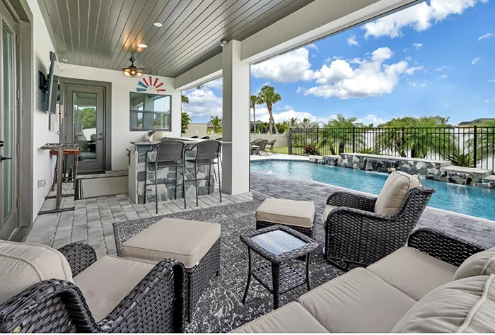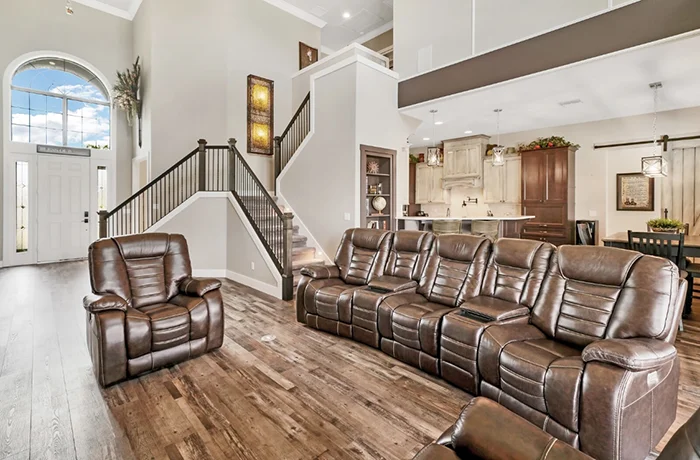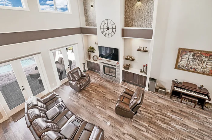 The Nicholas Model is the largest and most luxurious of the Homes with Heart charity giveaway. With soaring 21’ ceilings, dual staircases, an upstairs balcony, indoor and outdoor bars, this home was designed for unforgettable gatherings and modern comfort. *Pool NOT included